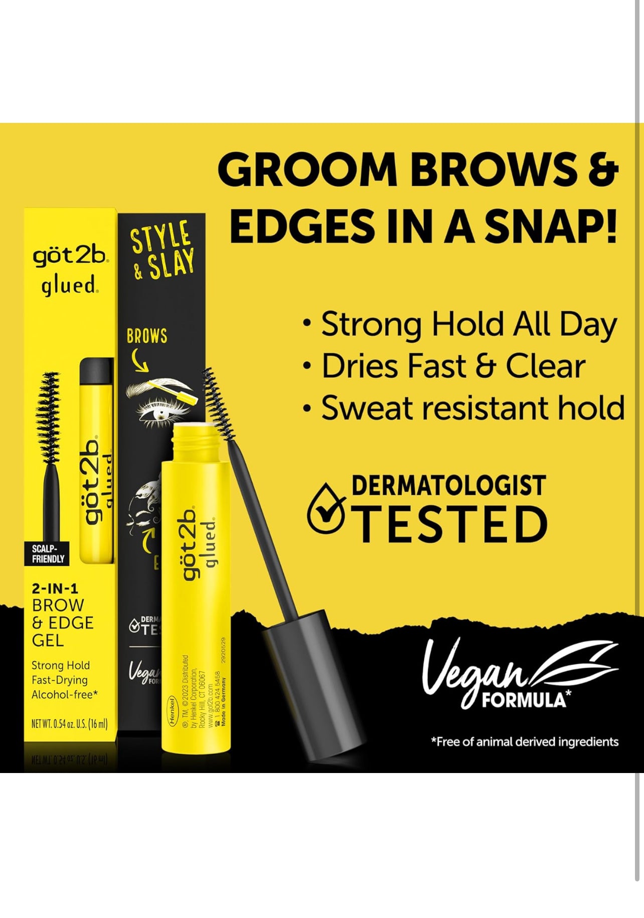 - Fórmula vegana: El gel got2b para cejas y cabello tiene una fórmula vegana y está libre de ingredientes de origen animal. Desafortunadamente, no debe aplicarse a las pestañas.